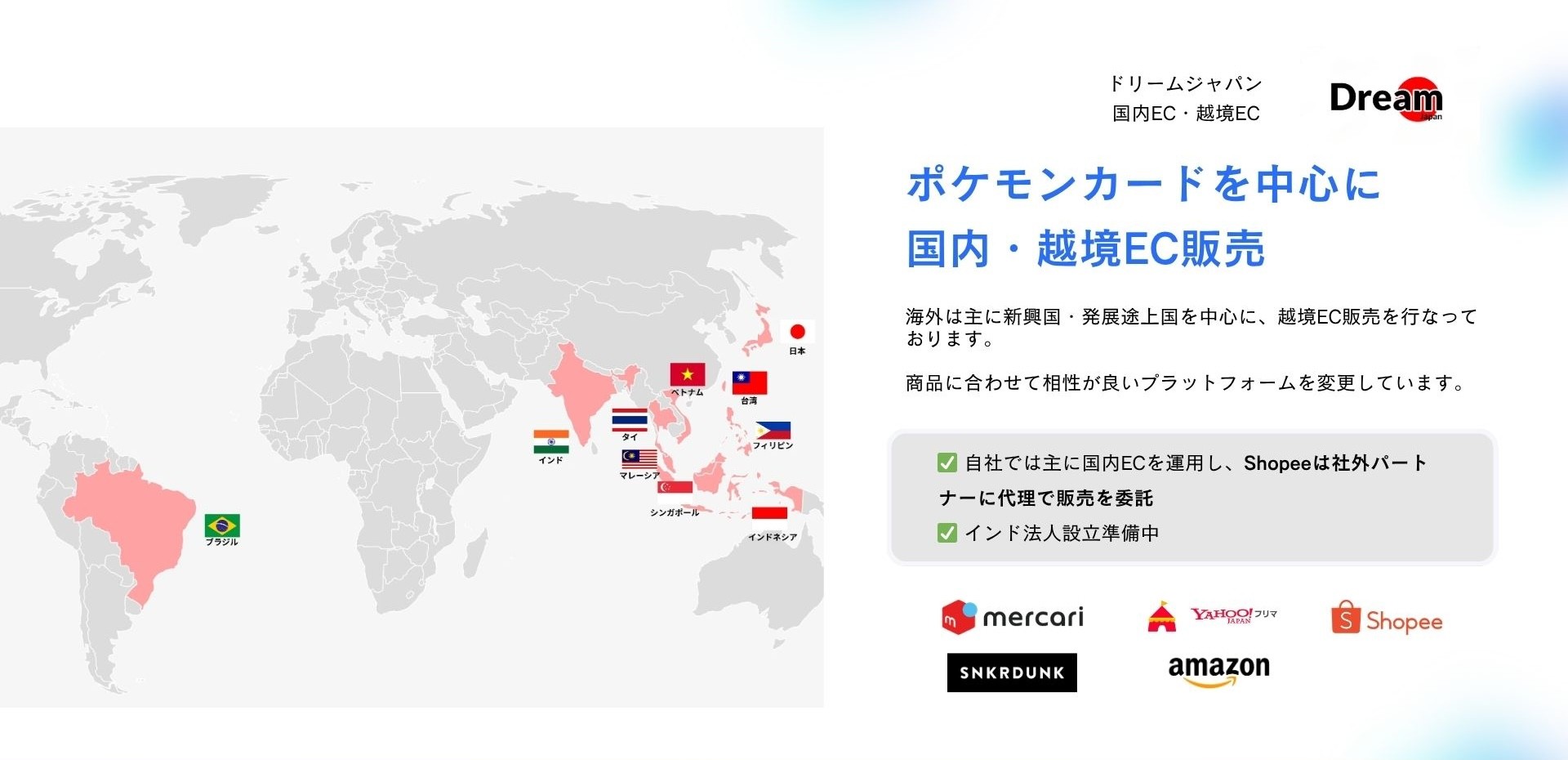 海外は主にフィリピンやマレーシアなど、新興国・発展途上国を中心に、ポケモンカードを越境EC販売を行なっております。