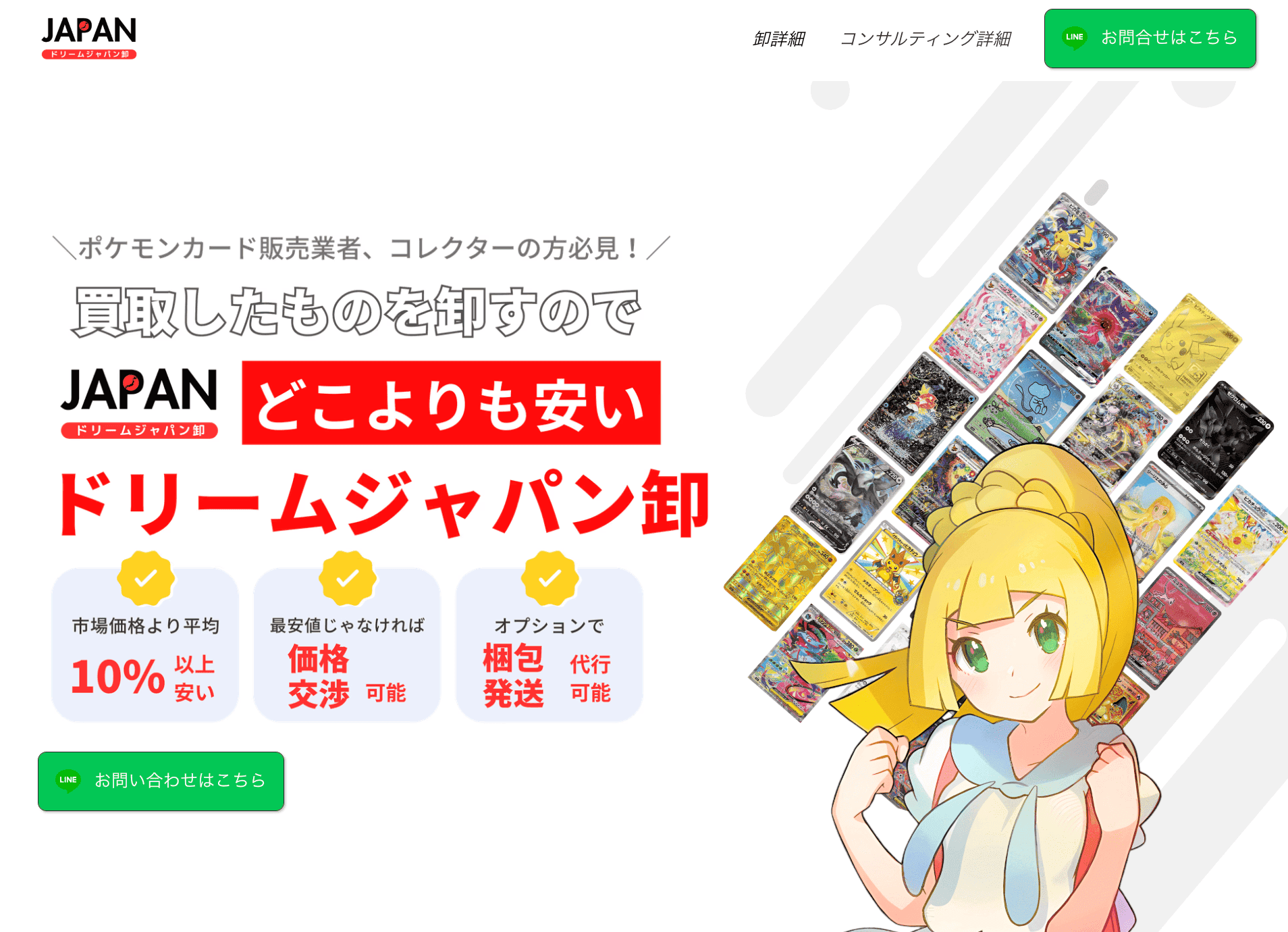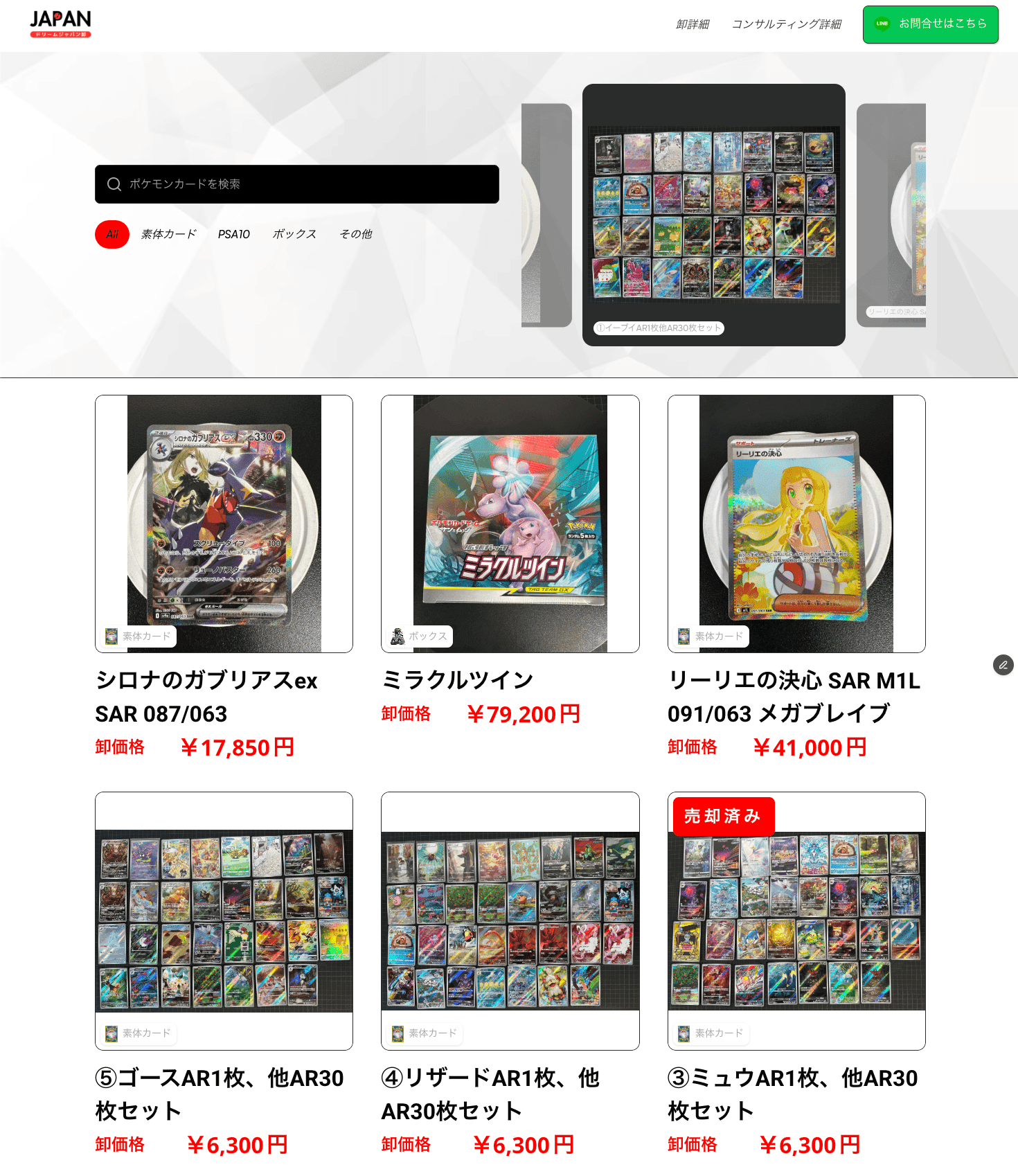 業者と提携し、買取したポケモンカードの卸販売、代行販売等を行っています。